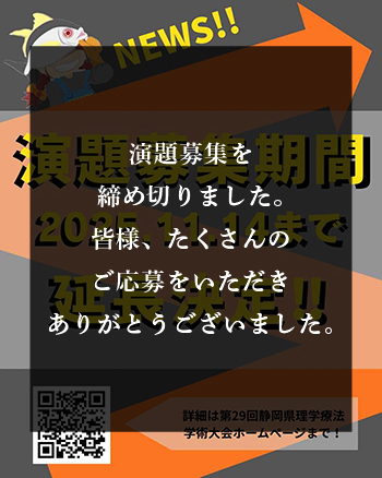 - ホームページを開設しました2026年6月14日(日)に開催される『第29回 静岡県理学療法学術大会』のホー… 続きを読む: ホームページを開設しました